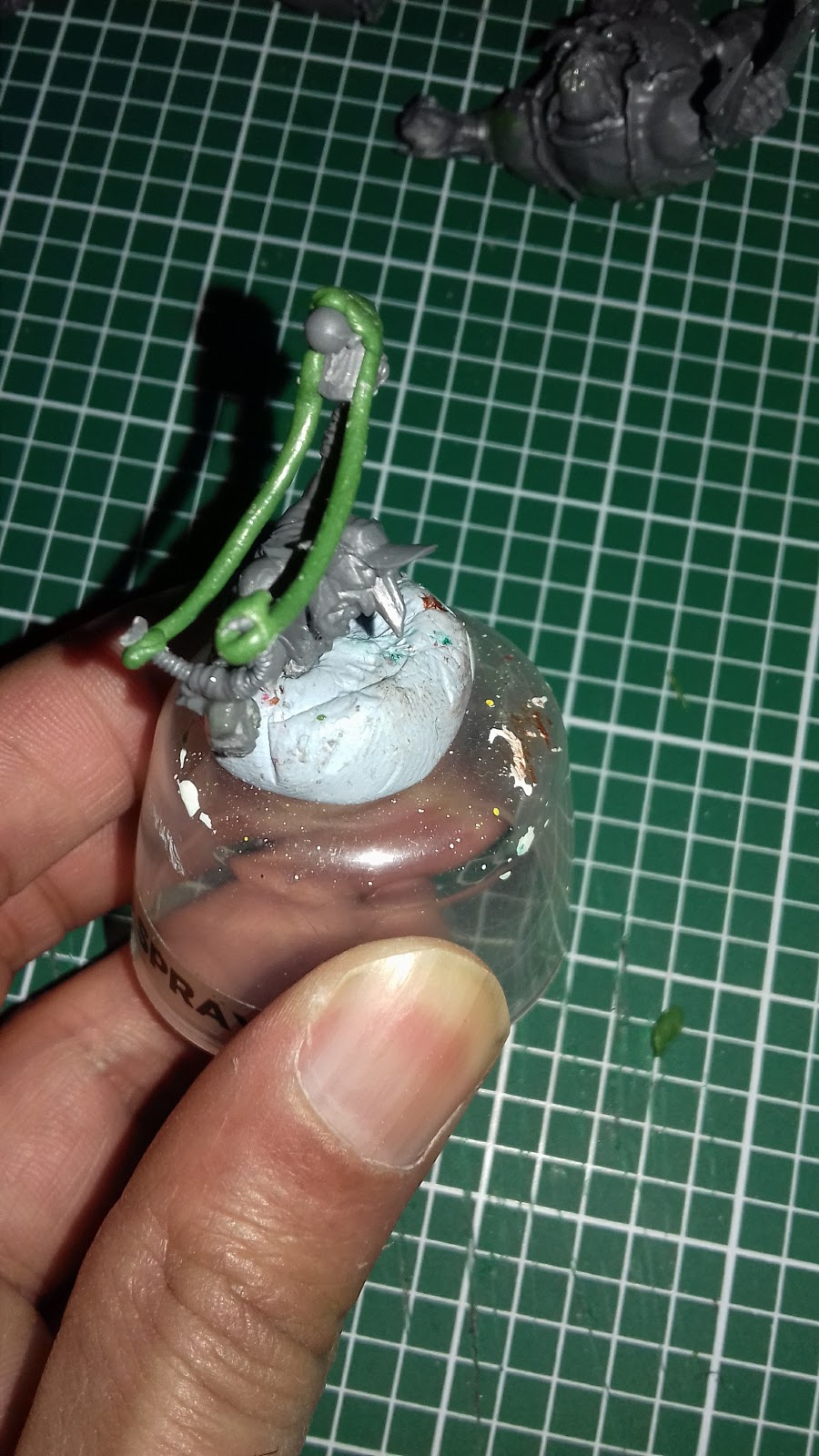 The Stormboyz kit has rocket packs. I put together the central circular piece and cut off the other rocket parts that were attached. In the photo above you can see the circular body with a fin still attached which I cut off later.